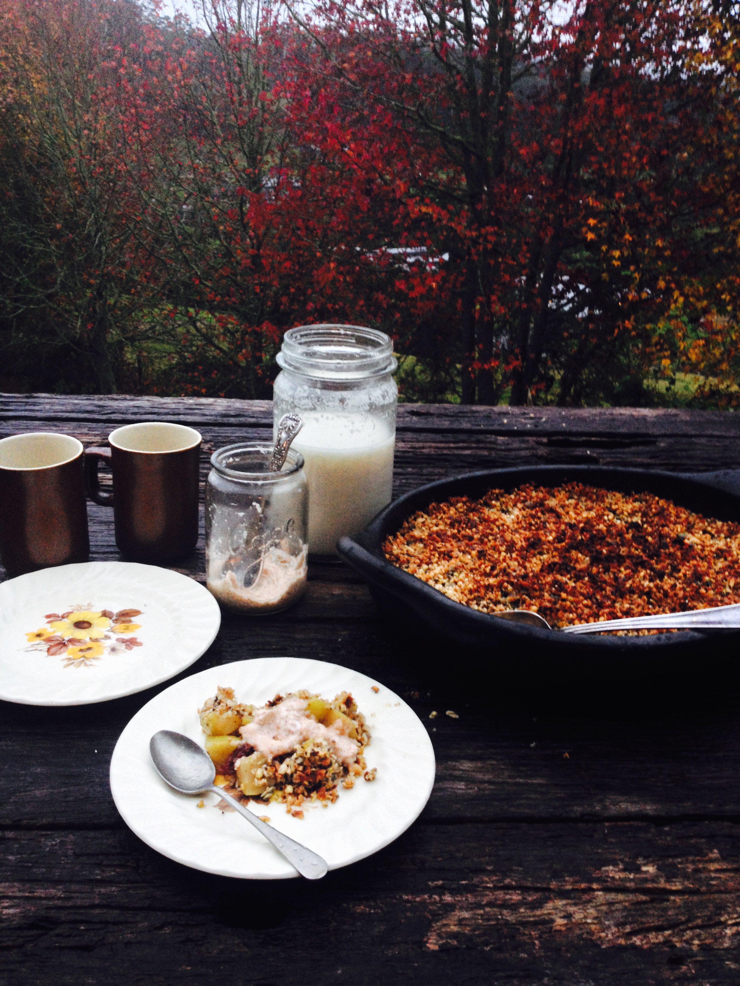 Green apples turn to Crunchy Autumn Apple Crumble, with homemade Coconut Milk and Cinnamon Coconut Cream